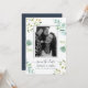 Elegant, simple photo wedding save the date invitation with green eucalyptus botanical design on a white background you can customise with your engagement photo. The back of the card is a chic navy blue. Simply add your upcoming wedding details. If you need any help or matching products, please contact us through our store. We're happy to help you make your wedding the most beautiful day! Exclusively designed for you by Happy Dolphin Studio.