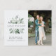 Announce your wedding date with this stylish design that has script lettering with eucalyptus leaves and a photo of the couple . The text is editable along with the lovely image.