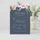 These eucalyptus garden floral wedding menu choice cards are perfect for a rustic wedding. The design features pink, blush, yellow rose flowers with eucalyptus leaves in a dark navy blue background.
