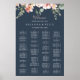 This eucalyptus garden rose alphabetical seating chart is perfect for a rustic wedding. The design features pink, blush, yellow rose flowers with eucalyptus leaves in a dark navy blue background.