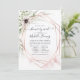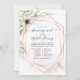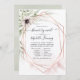 Long distance baby shower by mail invitation featuring anemone flowers and eucalyptus leaves in a rose gold - copper geometric frame.