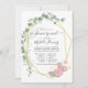 Trendy pink and gold geometric eucalyptus long distance baby shower by mail invitation with elegant handwriting typography.