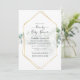 Trendy wild forest woodland eucalyptus herbarium drive through bridal or baby shower invitation with gold geometric frame.