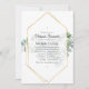 Trendy wild forest woodland eucalyptus herbarium virtual long distance baby shower invitation with gold geometric frame and silver sage reverse.