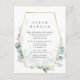 Wild forest woodland eucalyptus herbarium wedding guest details cards with gold geometric frame designed to be quickly and easily customised to your event specifics.
