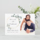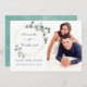 Trendy watercolor eucalyptus silver dollar wedding save the date photo cards with gold geometric frame.