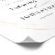 My thoughts on this product was excellent. Well printed in a gloss finishing and just the size l ordered. It arrived in good condition and am overall satisfied with the product. The printing turned out great. I was quite surprised with the finishing touch to the poster. The semi gloss was just right and a perfect size to display at the wedding.