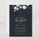 Eucalyptus Gold Floral Blue Wedding Breakfast Invitation