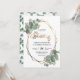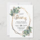 This is a beautiful wedding invitation featuring eucalyptus and gold geometric frame design. A matching background with eucalyptus leaves pattern is included.
