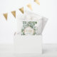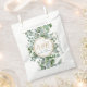 Here you may accomplish a sweet addition to your wedding personalising this minimal cute favour bag that features, our collection's associated design of a delicate eucalyptus wreath and gold glitter around to play with your initials above the wedding date and location.