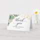 This is a beautiful thank you card featuring eucalyptus flower and gold leaves design.