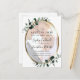 Eucalyptus Gold Metallic Photo Wedding Save the Date Postcard... Our luxe botanical Save the Date postcard features a gold metallic oval frame embellished with emerald-hued eucalyptus leaves creating a natural looking border for your photo and overlaid announcement text. The back of the card contains your return address, wedding website information, and a QR code graphic template you can replace with your own code graphic. All example text on both sides of the card can be easily revised with your own details on the personalisation template.