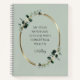 Eucalyptus Gold Motivational Quote Sage Ideas Notebook... Our sage green ideas notebook features a gold metallic oval frame embellished with emerald-hued eucalyptus leaves bordering this motivational saying: "My ideas notebook is filled with conceptual wealth." Beneath the text is a place for your monogrammed script signature so you can "own" these words.