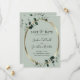 Eucalyptus Gold Metallic QR Code Sage Wedding Save the Date... Our sage green luxe botanical Save the Date card features a gold metallic oval frame embellished with emerald-hued eucalyptus leaves creating a natural looking border for the announcement text within. The back of the card contains your wedding website information and an example QR code template you can replace simply by typing in your wedding website URL All example text on both sides of the card - and the updated QR code - can be easily revised with your own details on the personalisation template.