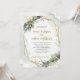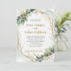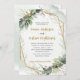 This wedding invitation blends natural elegance with refined charm, featuring a soft botanical design of green eucalyptus foliage and shimmering gold accents that frame the layout with grace. The colour palette evokes a serene, upscale garden atmosphere, while the mix of classic serif and flowing script fonts adds a sense of romance and rustic charm. The overall composition feels balanced and welcoming, perfect for a celebration set in a vineyard or similarly picturesque venue, where tradition meets warmth and joy. Easy to personalise with your own information.