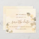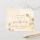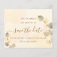 A golden watercolored background decorated with golden eucalyptus foliage. Personalise and add the date, place and your names. Golden coloured letters. The text: Save the Date is written with a large trendy hand lettered style script.