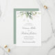 Beautiful Save the date card featuring watercolor eucalyptus and gold leaves with calligraphy script.