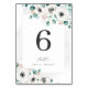 Modern chic watercolor Eucalyptus greenery and anemone floral on light grey background, with trendy table script, elegant and stylish, great wedding table number cards for rustic wedding, botanical wedding and beach wedding.