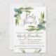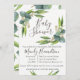 Trendy and chic watercolor silver dollar and flowering willow eucalyptus foliage baby shower invitation. Personalise text font style, colour, and size. Background colour can be customised as well.