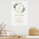 Welcome guests to your shower with this beautiful poster, featuring a golden frame with sprays of greenery. Add the guest of honour's name, shower date and custom welcome text using the fields provided.