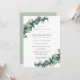 A sage green eucalyptus sprig and navy blue privet berries decorate the top and bottom of this chic minimalist botanical design.