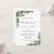 A white background decorated with eucalyptus greenery and golden foliage. Personalise and add your names and wedding details.