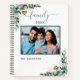 Personalise and add your own family photo. A green frame decorated with eucalyptus greenery and faux gold foliage. Elegant white background. Add your family name and year.