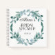 Elements: watercolor painting, full frame, greenery, leaves, eucalyptus, serif typography. Colours: green, blue, sage, mint, aqua & white with warm black typography. Themes: garden, nature, botanical, romantic, outdoors, whimsical, foliage, light and bright, vintage, elegant. Collection: Eucalyptus Greenery Frame Green Blue White Bridal Wedding Suite. Product Type: Guest Book