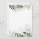 Watercolor eucalyptus greenery, champagne glass, and string lights on a white background.