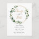 This elegant and customisable Change the Date card features an geometric gold frame adorned with moody watercolor eucalyptus leaves & has been paired with a whimsical calligraphy and a classy serif font in gold and grey, with a post card back. To make advanced changes, please select "Click to customise further" option under Personalise this template.