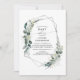 Geometric silver frame and lush watercolor botanical eucalyptus greenery elegant baby shower invitations.