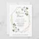 This minimalist and trendy wedding welcome dinner invitation features simple and romantic watercolor eucalyptus leaves and foliage on a faux gold geometric centre frame.