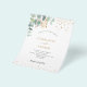 A chic white background. Decorated with green watercolored eucalyptus leaves, sprigs, greenery and a faux gold sprig. Golden hearts. Personalise and add your names and wedding details. Black letters.
