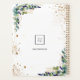 Eucalyptus greenery and faux gold foliage. Elegant white background. Personalise and add your business logo, monogram initials, name and a text.