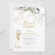 Beauty and fun with this brunch & bubbly Bridal Shower champagne luncheon invitation designed with whispy soft eucalyptus branches gilded gold leaves, and a dusty blue backdrop on the back of the card. Easily customise with the bride-to-be name and other important information.