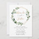 This elegant and customisable Wedding Invitation features an geometric gold frame adorned with moody watercolor eucalyptus leaves & has been paired with a whimsical calligraphy and a classy serif font in gold and grey. To make advanced changes, please select "Click to customise further" option under Personalise this template.