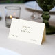 On the other side, you can personalise the card with the couple's names along with the wedding date and the table number as well, creating a cohesive look. The elegant typography used throughout enhances the romantic feel of these place cards.