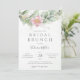Beautiful bridal brunch invitation featuring pink floral watercolor eucalyptus and gold leaves.