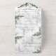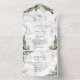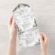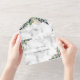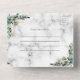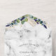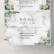 A marble print background decorated with watercolored eucalyptus greenery and golden leaves. Personalise and add your names, monogram and wedding details.