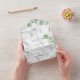 A marble print background decorated with watercolored eucalyptus greenery sprigs. Personalise and add your names, monogram and wedding details.