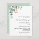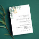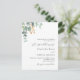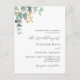 A chic white background. Decorated with green watercolored eucalyptus leaves, sprigs, greenery and a faux gold sprig. Personalise and add your names and wedding details. Black letters.
