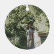 Elegant ornament featuring a wreath comprised of eucalyptus leaves and greenery with a hint of blue with "Our First Christmas as Mr. and Mrs." along with your last name and year in dark green over a pastel watercolor wash. The backside has your favourite wedding photo. This rustic, botanical ornament also makes a great gift for a newlywed couple for their first Christmas.