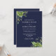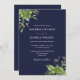 Eucalyptus Greenery Navy Blue Monogram Wedding Invitation