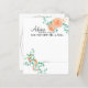 Design features a soft watercolor eucalyptus stems and an orange/peach floral with matching ribbon. The back consist of a coordinating design an elegant printed gold coloured oval frame decorated with watercolor eucalyptus stems and an peach/orange ribbon. Matching items to complete your event collection are available in our Zazzle store!