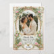 Introduce your friends and family to the first glimpses of your special day with this elegant and unique save-the-date card invitation. This design was specifically created to showcase a treasured photo of you and your lifetime partner while featuring gold vintage detailing along with pink florals and lush eucalyptus greenery. It is perfect for any romantic, garden, vintage, and timeless wedding themes as it offers a vintage yet modern aesthetic that will beautifully complement your special moment.