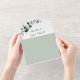 Eucalyptus Greenery QR Code RSVP White and Sage All in One Wedding Invitation... Our all in one white and sage botanical wedding invitation features elegant eucalyptus branches with sage and emerald-hued leaves creating a natural looking border for the invitation text within. The tear-off RSVP contains your wedding website information and a QR code graphic template you can easily replace with your own code, allowing your invitees to RSVP online... plus see all of the details they need to know about your reception, menu choices, accommodations, and gift registry. The QR code graphic and example text can be easily revised with your own information on the personalisation template. Just follow step by step on the template and then double check everything before you purchase your invitations. This modern style all in one invitation is both time-saving and budget conscious, created especially for busy brides-to-be.