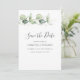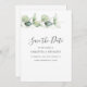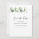 Eucalyptus Greenery Script Wedding Save the Date announcement you can easily customise by clicking the "Personalise" button above