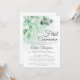 Step into the serene elegance of "Eucalyptus Greenery Simple First Communion" with our customisable invitation template. Embrace the beauty of nature with delicate eucalyptus accents, perfect for your child's memorable occasion. With this template, you have the power to personalise every detail, ensuring your invitations reflect your unique style and celebration. Choose between convenient print orders or instant downloads, making preparation effortless and stress-free. Whether it's a traditional church ceremony or a cosy family gathering, our invitation template sets the perfect tone for your child's special day. Order yours today and let the celebration begin!