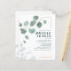 Modern, greenery, and trendy budget bridal shower invitation cards featuring eucalyptus and modern typography in dark grey. Simply plug in your details by clicking the "Personalise" button.