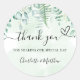A green watercolored background. Decorated with eucalyptus greenery and forest fern. With the text: Thank you for sharing our special day. Personalise and add your names.